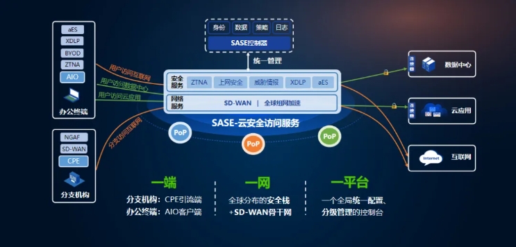 用户只需购买一个All In One客户端,便可就近接入全球分布的SASE PoP点网络,按需订阅云端安*力。所有安*力均采用即开即用模式,并支持灵活扩展,以满足不同规模企业下的多样化场景需求。