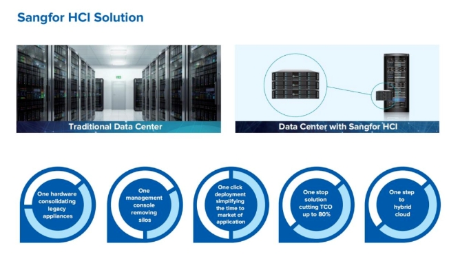 深信服超融合实现了计算、网络的全面池化,管理员仅需要登录超融合管理平台,即可实现对不同集群的业务同时进行上线、变更等一系列操作。