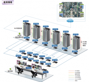●NVR的VGA端口通过CE750延长。DVI接口转换为HDM后,通过VE800延长,然后从控制中心进行控管。