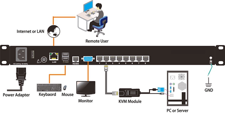 双通道: 一个KVM over IP远程访问通道与一个本地控制端访问通道,本地与远程用户可同时操作,交叉访问,管理不同的主机