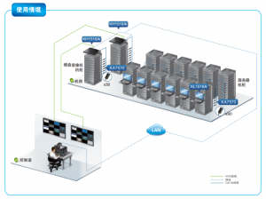 ●使用ATEN KH1516AI,管理者不但可以集中访问30台硬盘录像机,而且通过本地端连接至控制室墙上电视机可以实现显示实时录像。
