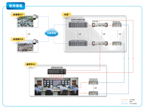 某市公安局是市政府重要职能单位。某市公安局为了维护社会的稳定和谐,在各街道安装了网络摄像头,摄像头所采集的路面信息都实时传递到某公安局机房的视频服务器上,透过我们的影音产品延长到监控调度中心,以便于工作者清晰掌握路面的实时情况。
