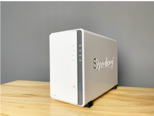 群晖 DS220j 体型较为小巧,白色的配色也比较百搭,放在桌面上也不会觉得难看。关键是很轻,只有 880g,从盒子里拿出来的时候,一度以为它是个空盒子。内部只有两盘位,*高支持 32T 的储存,对于普通用户来说也够了。