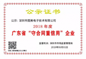 “广东省守合同重信用企业”是由工商行政管理局颁发牌匾和证书,并在政府网站统一公示,图美电子连续二年获此殊荣,这也是政府部门及社会各界对我司给予的高度肯定。