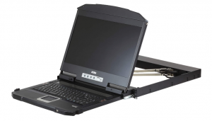 整合18.5寸LED背光模组技术的高分辨率宽屏幕LCD液晶屏幕和KVM控制端于双滑轨设计的机体内,略小于1U的双滑轨机架设计,可轻松安装于1U高度的机架空间内