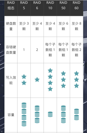 硬盘数量 至少 3 颗 至少 4 颗 至少 4 颗 至少 6 颗 至少 8 颗