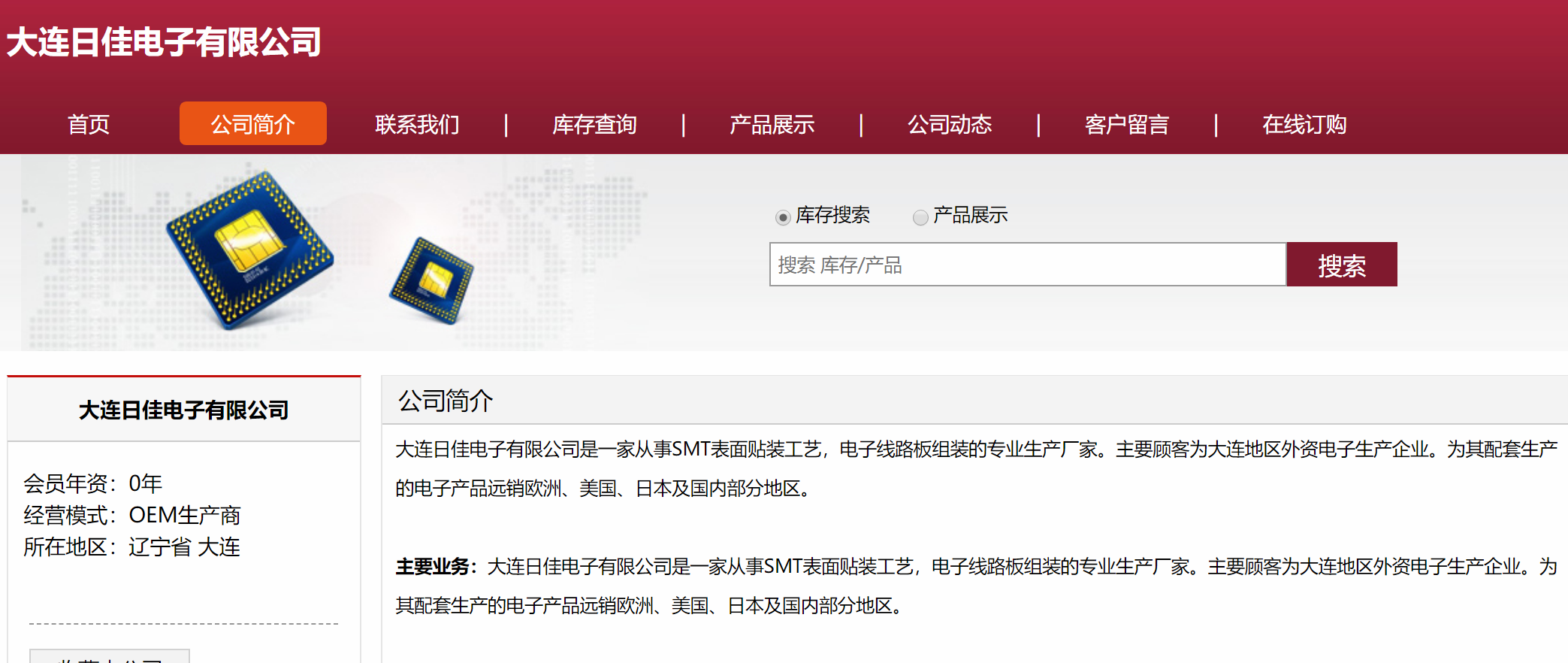 大连日佳电子成立于 2002 年 12 月,是国家高新技术企业。从事汽车电子、轨道交通,及工业电子及机器智能设备的研制和销售,并提供电子产品 EMS/ODM 服务,在生产过程中开发应用智能制造系统(IAMES)。是”大连市机器智能视觉技术及装备工程研究中心”,大连理工大学、大连大学、大连民族大学实训基地。公司国内外设有营业网点,在大连、沈阳、青岛设有分公司。