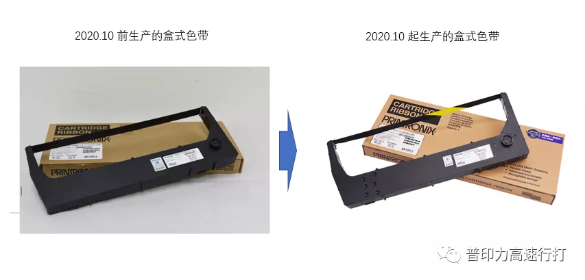 这是正常现象,并且是普印力色带生产上的改进,产品性能和规格没有发生变化,请用户放心使用。
