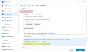 - 请进入控制面板>文件服务 > SMB (DSM 7.0)或 SMB/AFP/NFS (DSM 6.2)。