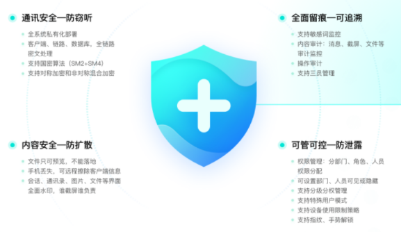 此外,360织语支持全系统私有化部署,通过信息传输与存储加密、严格的权限控制,可避免信息泄露,有效信息的安全;织语平台均按等级保护和分级保护要求进行权限管控,通过“全程防窃听、事前防泄漏、事中防扩散、事后可追溯”的安全机制,建立起对政企办公协作安全可控的保密体系。