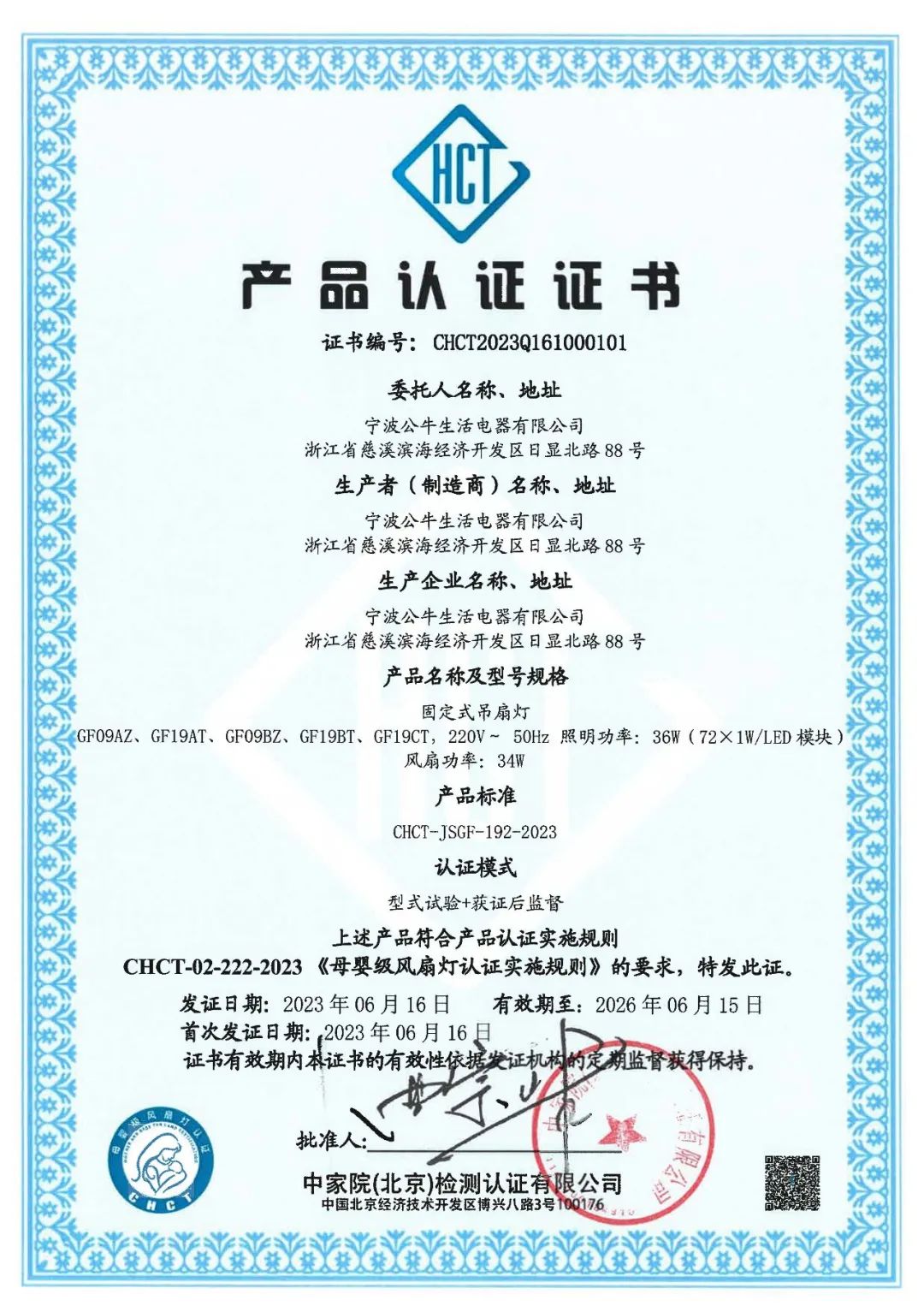 中家院(北京)检测认证有限公司(CHCT)是中国家用电器研究院下属专业从事检测认证业务的第三方技术服务机构,已具有50余年历史,是国家认证认可监督管理委员会批准成立行业内独一的“国家智能家居质量监督检验中心”,旨在承担行业标准、检测技术、智能认证等工作,赋能智能家居行业的健康发展。