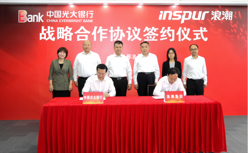 8月11日,浪潮集团与光大银行在北京签署战略合作协议。浪潮集团党委书记、董事长邹庆忠,光大银行行长王志恒出席签约仪式,并就加强战略合作交换意见。浪潮集团财务总监孔祥泉、光大银行副行长曲亮分别代表双方签署战略合作协议。