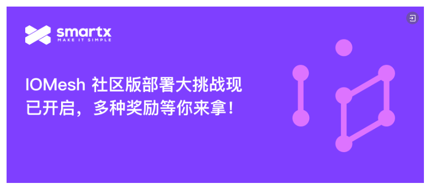 想免费体验 IOMesh 功能与特性?快来参加 SmartX 近期开展的“IOMesh 社区版部署大挑战”活动!仅需半个小时,即可完成 IOMesh 社区版部署,获取 IOMesh 商业版基本功能的*免费使用权,并解锁社区专家支持和更多挑战奖励。欲了解活动详情和报名方式,请阅读:有奖体验|IOMesh 社区版部署大挑战开始啦!