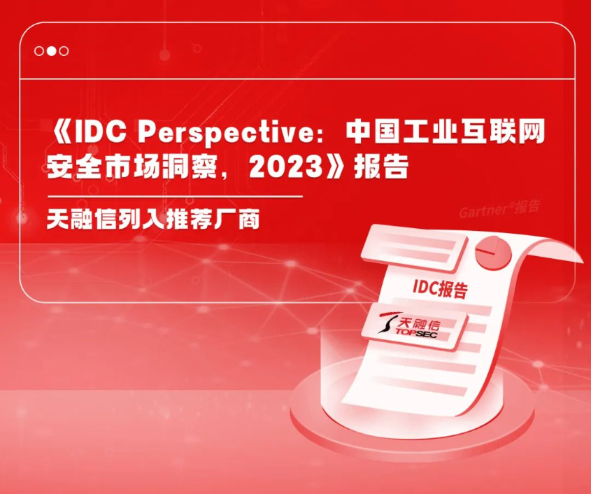 近日,IDC正式发布《IDC Perspective:中国工业互联网安全市场洞察,2023》报告(下称《报告》)。天融信凭借在工业互联网安全领域深厚的技术能力与实践积累,入编《报告》并成为IDC*厂商。