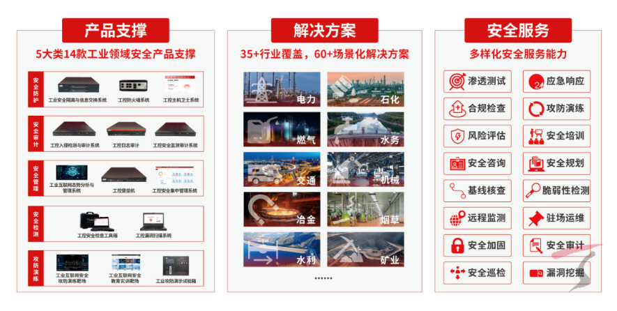 天融信结合工业领域自身发展与安全需求的演进,将成熟的网络安全技术与工业互联网业务场景深度融合,创新性地提出“行为基线”“双安融合”等技术发展理念,构建安全检测、安全防御、安全监测感知为一体的纵深防御解决方案。目前,天融信已在电力、石油石化、烟草、煤炭、冶金、汽车制造、水利水务等35+行业形成完整的解决方案并落地实践,打造出典型行业应用标杆,助力工业互联网企业数字化转型发展,共同赋能数字中国建设。