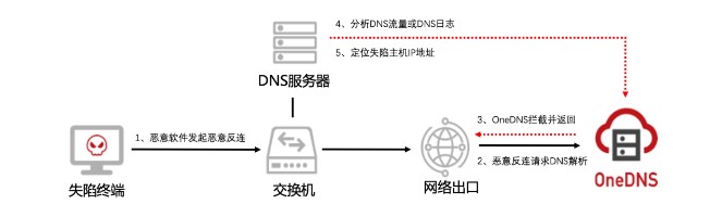 上图展示了利用OneDNS实现安全闭环的完整过程: