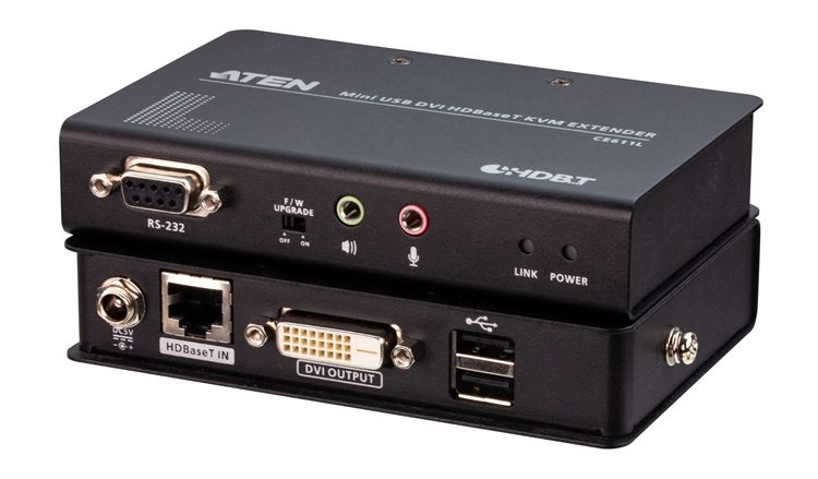 Extends video, audio, USB, and RS-232 signals via a single Cat6 / 6a / ATEN 2L-2910 Cat 6 cable
