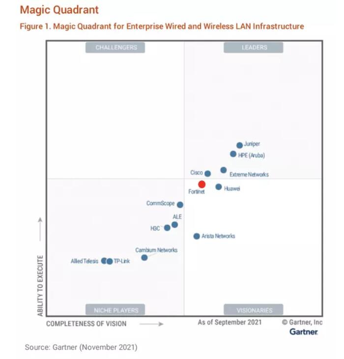 图1:2021年Gartner®企业有线和无线LAN基础设施魔力象限™