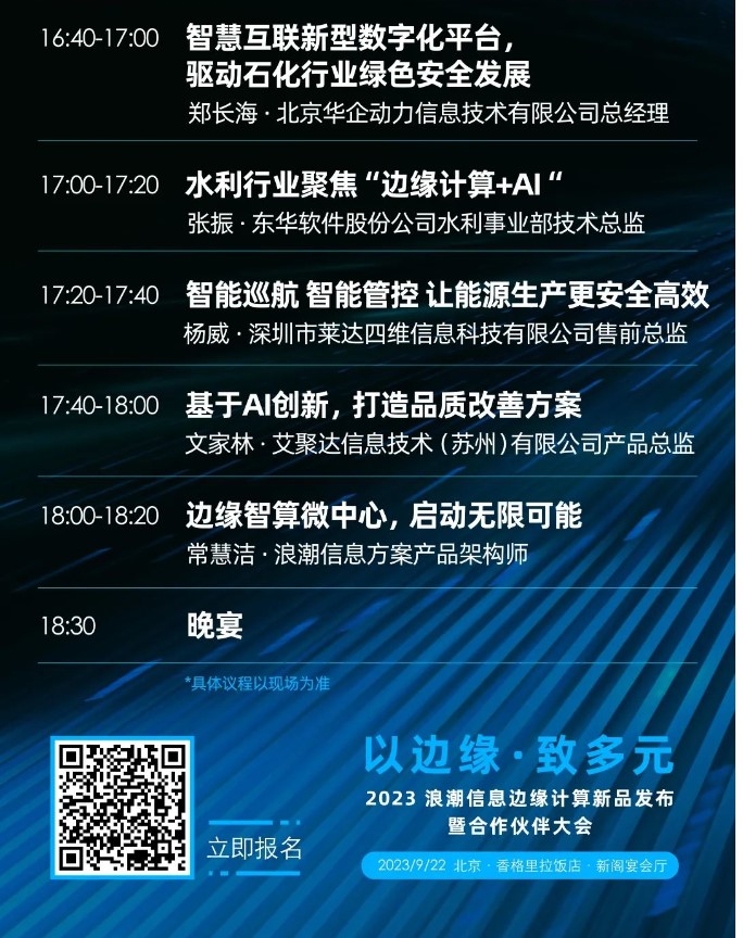 9月22日,浪潮信息边缘计算新品发布暨合作伙伴大会将在北京隆重举行,本次大会主题聚焦“以边缘 致多元”,汇聚ICT产业专家、客户及合作伙伴,共同探讨边缘计算发展的*机遇与挑战,分享边缘计算*前沿的创新,并首次亮相全栈边缘计算产品及解决方案,揭牌融合、开放的“融携实验室”,携手合作伙伴共同探索千行百业的智慧化转型模式。