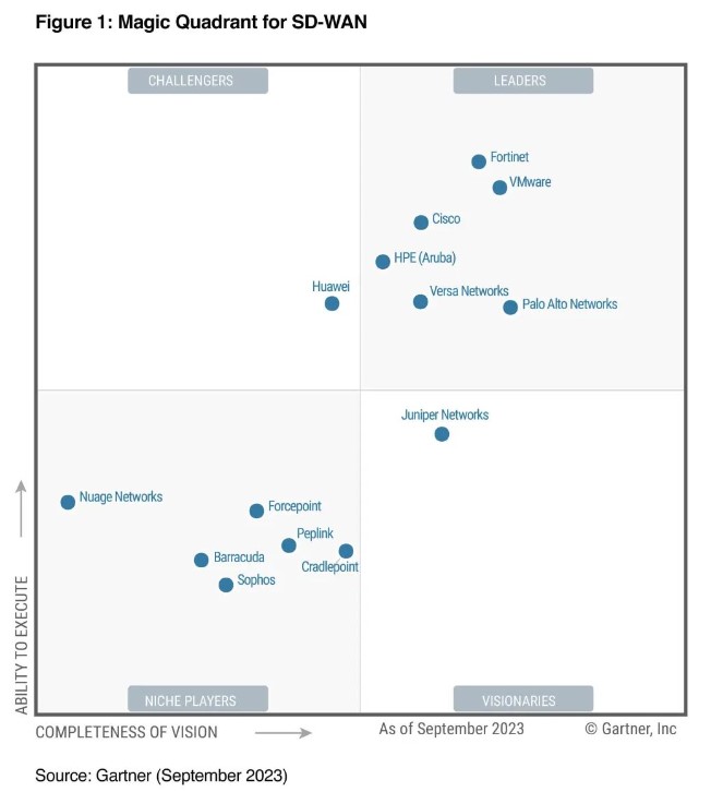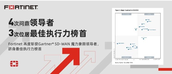 近日,Gartner® 发布了《2023 SD-WAN 魔力象限》,Fortinet再度荣膺“*”殊荣!这也是Fortinet(NASDAQ:FTNT)作为推动网络与安全融合的全球网络安全*连续第四年蝉联此称号。与此同时,Fortinet 也成为业内*一家连续三年位居SD-WAN魔力象限*高执行力榜首的安全厂商。