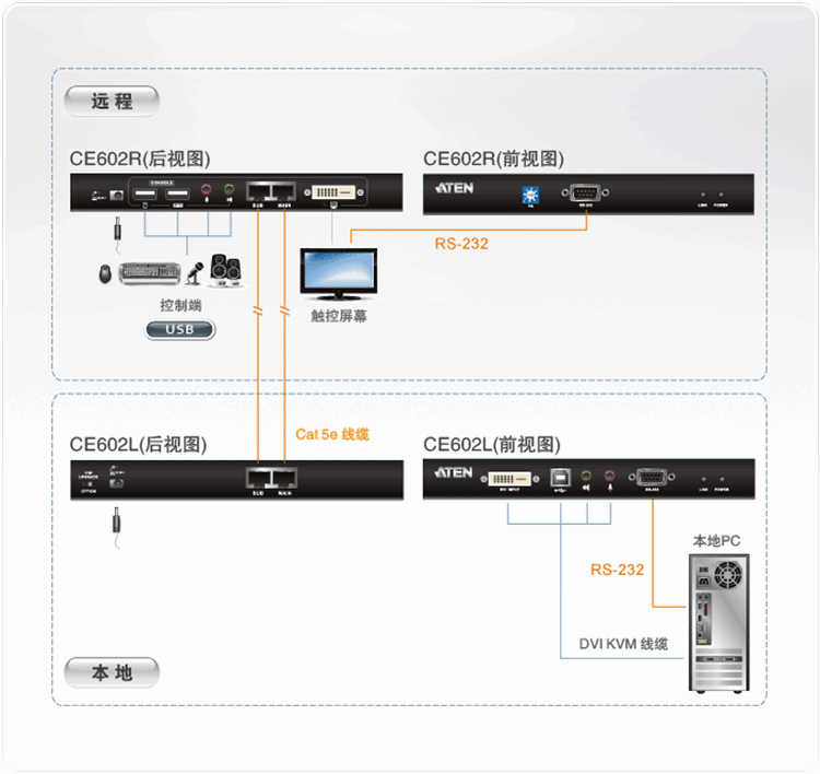 通过Cat 5e线缆连接本地与远程设备,*远可达60m
