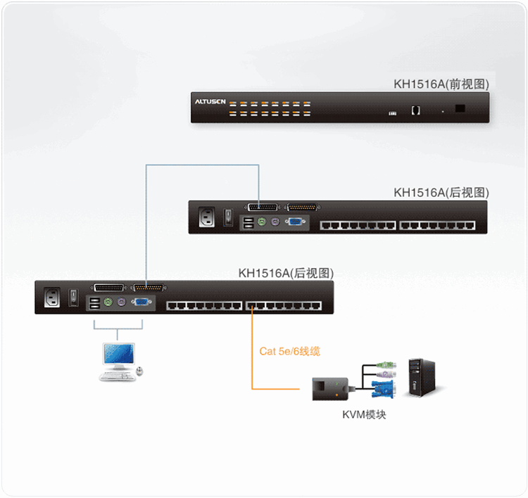 1 x KH1516A 16端口Cat 5高密度KVM多电脑切换器
