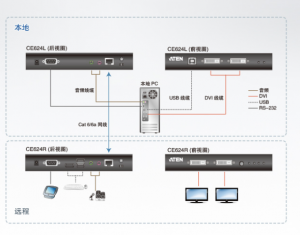 CE624 仅需通过一条Cat6/6a网线,即可传送电脑端高品质 DVI Dual View影像、PCM双声道数字音频、USB 2.0及RS- 232信号,*远距离可达100m。支持各种信号以及简便的网络 线安装,CE624*适合使用于需要便利远程访问的应用,例 如交通控制中心、医疗设施、工业仓库及延伸工作站等地点。