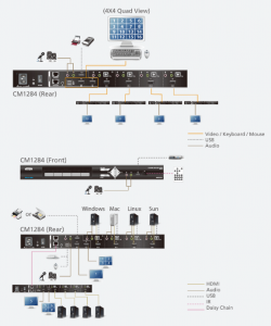DCC (Daisy Chain Control) – Controls up to 3 additional CM1284 units from a single console; Cascade up to 2 levels – Controls up to 16 computers (with up to 4 x 4 Multi-view mode)