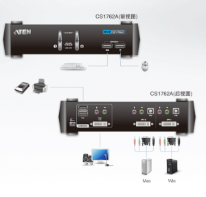 1 x CS1762A 2端口USB 2.0 DVI KVMP™多电脑切换器
