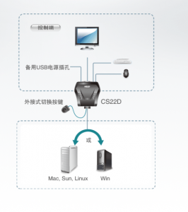 CS22D是一款2端口USB DVI KVM多电脑切换器,用户可通过一组USB和DVI控制端(键盘、鼠标和显示器)控制两台电脑,并可通过外接式切换按键,简单且快速地切换电脑。