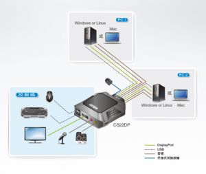 CS22DP是一款2端口USB DisplayPort带线式KVM多电脑切换器。让用户可通过一组USB键盘、鼠标和DisplayPort接口的屏幕切换控制两台电脑及其音频功能。让用户通过CS22DP的外接式切换按键轻松快速地选择想要操作的电脑。