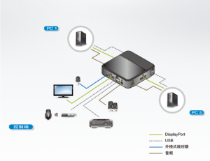 可通过一组DisplayPort屏幕及一组USB键盘、鼠标管理两台DisplayPort接口电脑