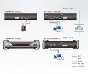 The KE6900A extender is consisted of a high performance IP-based transmitter (KE6900AT) that connects to the computer and a receiver (KE6900AR) that provides console access from a separate location. The KE6900A allows extended access of computer systems remotely via USB consoles (USB keyboard, USB mouse, DVI monitor) over intranet, enabling users to place the computer system in secure and temperature controlled environments, which maybe isolated from users’ workstation.