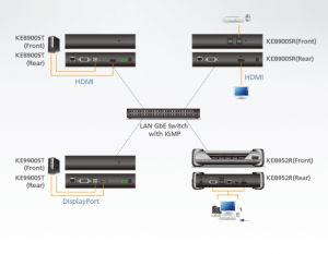 The KE8900ST can be set on a desk, mounted on a wall or at the rear of a rack with its space-saving 0U rack mount design. Moreover, the KE8900S can be used as a point-to-point/point-to-multipoint/multipoint-to-point extender, or integrated into a KVM over IP Matrix System (multipoint-to-multipoint) when combined with the KE Matrix Management Software (CCKM), providing more flexible applications in different working environments.