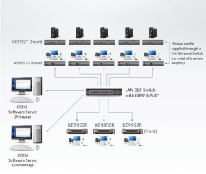 通过KE Matrix管理软件(CCKM)管理 KE9952,使用者能享有更多进阶功能,例如无缝切换、推拉共享內容(Push and Pull)、电视墙配置、多屏幕设定、影像档案排程及优化等等,使用者可使用上述快速且控制简易的工具,通过网络连线从远端连续不中断地存取配置KE9952。
