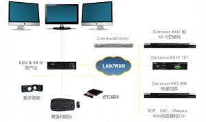 Dominion KVM和串行设备,包括SX II,KXIII, KSXII和KX2-101-V2,可与力登CommandCenter安全网关整合。通过CommandCenter管理系统,管理员可以管理多个力登设备。用户可以通过PC、笔记本电脑或KXIII用户站,从一个单一集成的系统,对成百上千台计算机和网络设备进行访问。如果您拥有5台以上力登的设备,您可以考虑采用力登CommandCenter进行集中管理和访问。