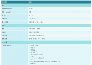 17英寸350 cd / m2 SXGA平板电脑,带IntelR CeleronR处理器J1900,TDP 10W,2GB RAM * 1,支持iRIS-2400,黑色,9-36V DC输入,带AG涂层的电阻式触摸屏,R12